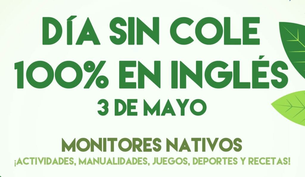 El próximo 3 de mayo tendremos un día sin cole en Majadahonda para peques de 3 a 12 años. Harán manualidades, deportes, receta divertida y un montón de juegos. Un día perfecto para que aprendan inglés sin darse cuenta. Los monitores son nativos y con mucha experiencia. El trato con los niños es excepcional y […]